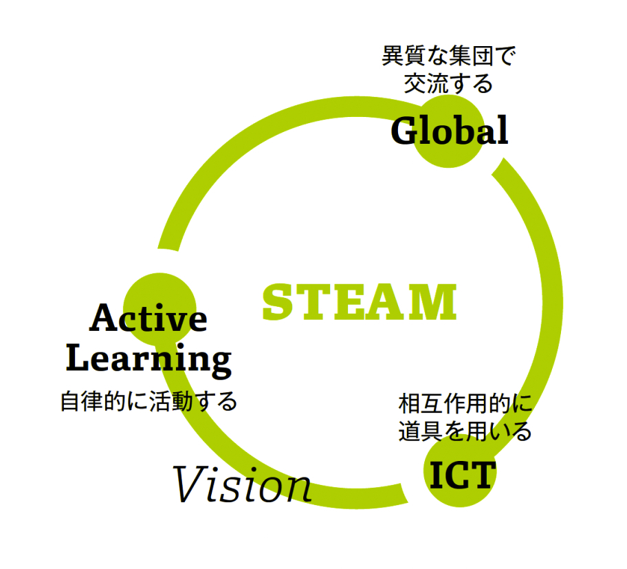 一口に「グローバル」と言っても、語学力だけでなくさまざまな知識や技術、そしてコミュニケーション力が求められます。STEAM での取り組みも含めた複合的な学習体験を通じて、グローバルに活躍するための素養を養っていきます。