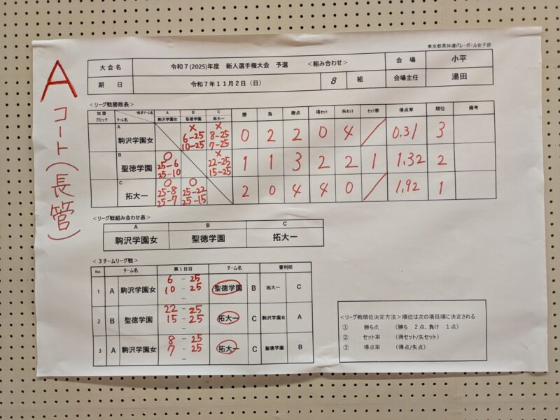 本日、高体連主催の新人リーグ戦に出場いたしました。3チームによるリーグ戦の結果をご報告させていただきます。