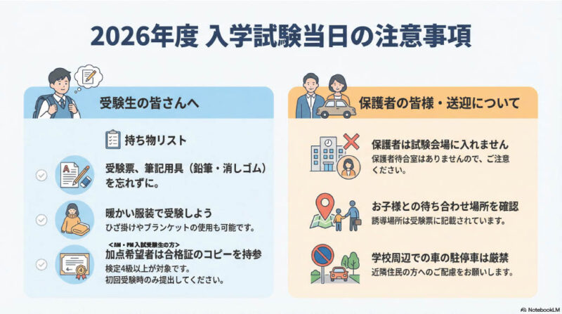 保護者の皆様におかれましては、当日の流れや諸注意について、以下の通りご確認をお願いいたします。