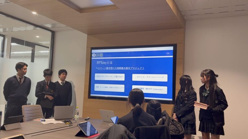 今回のベトナム研修旅行を担当していただいているHIS様にご協力していただき、1月22日HIS様のオフィスで成果報告会を実施しました。