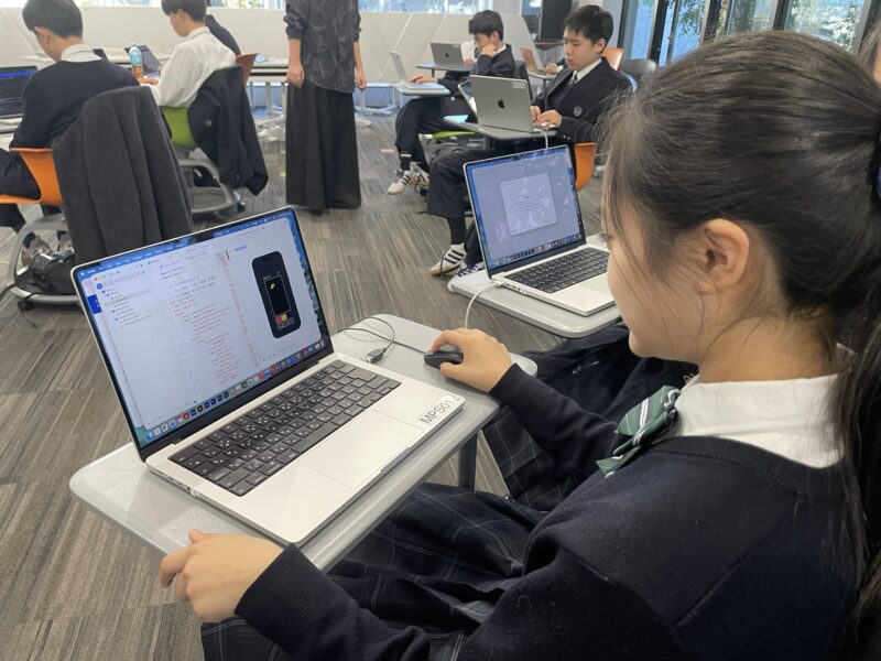 アプリ制作コースでは、Xcodeを使った中高生向けのアプリ開発に挑戦し、生成AIを利用しながら、ゼロからアプリの開発や改善を行いました。
