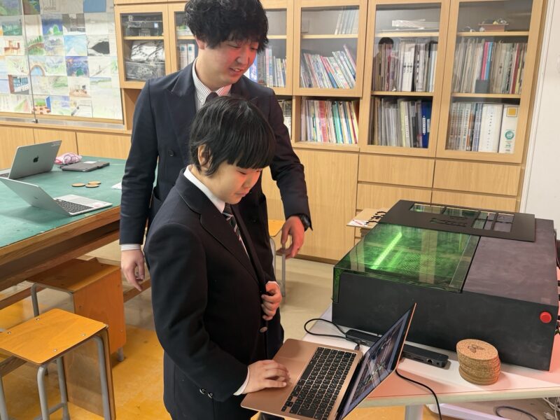 また新設のプロダクト制作では、XToolを用いて作成したレーザーカッター用データから、実際にコルク板を切り抜いてコースターやスマホスタンドの制作に取り組みました。
